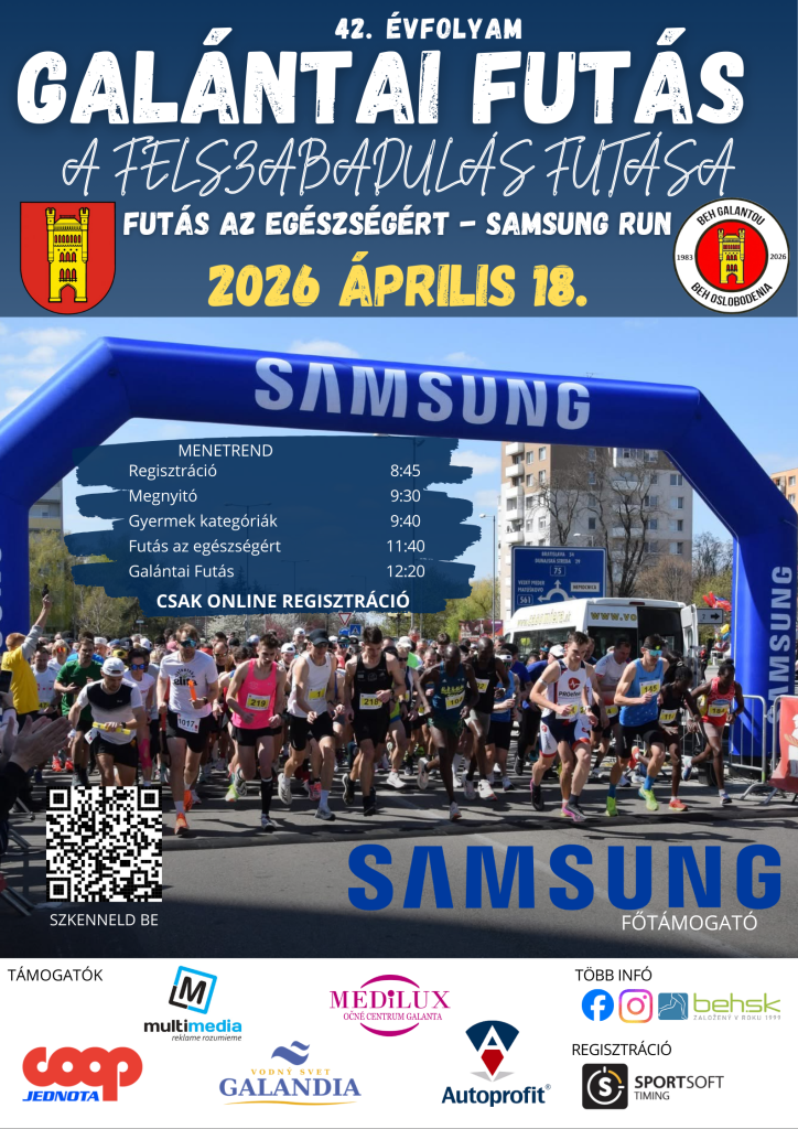 Športová udalosť roka v Galante má dátum 18. apríl 2026. Registrácia na 42. ročník podujatia Beh Galantou - Beh oslobodenia je možná na tomto odkaze: https://registrace.sportsoft.cz/main.aspx?e=3498&lng=sk